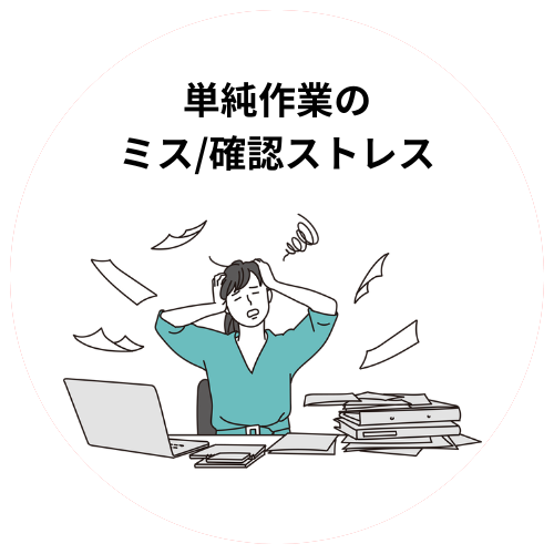 また、システムにより自動的に処理されるため、集中力の欠如など、単純作業の効率が低下することなく、見間違いや入力間違いなどのヒューマンエラーを防ぐ効果もございます。